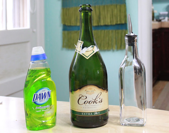 For the past couple of months, I've been hoarding collecting glass bottles in the kitchen with a variety of uses in mind for them. Today, I took the first step toward utilizing them.