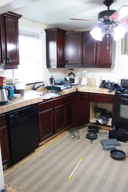 I was determined to wait until the kitchen was completely done before showing it off to you... but it's been over a month and I can't stand it anymore. I'm more of a "Hey, look at my progress!" kind of girl. So, here are a few before and afters: