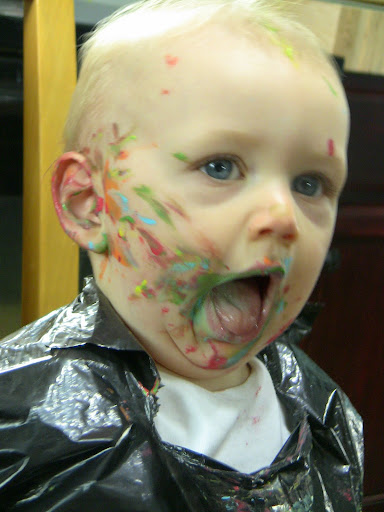 Good thing they make non-toxic finger paints. Mr. Silly Pants got in a few tastes.