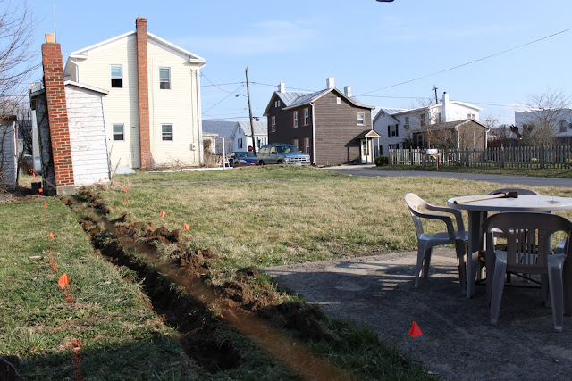 We ordered 70 baby Canadian Hemlocks for our future hedge line around the back and side of our yard. Once they arrived, we had to soak their roots overnight in water. Did you know that you can fit 70 hedgelings into a single trash can? Who knew? In my head, I pictured them a little bit bigger.
