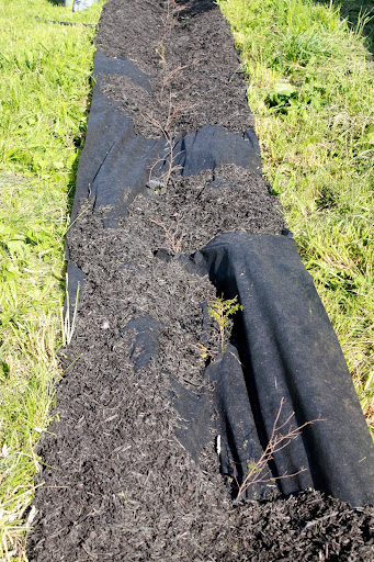 That'll keep those pesky weeds back! It was easy too. Simply roll out the fabric and cut a few X's to accommodate for the hedgelings..