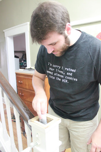 Then, last week, Stephen and I had a discussion about what should go on top of the newel post.