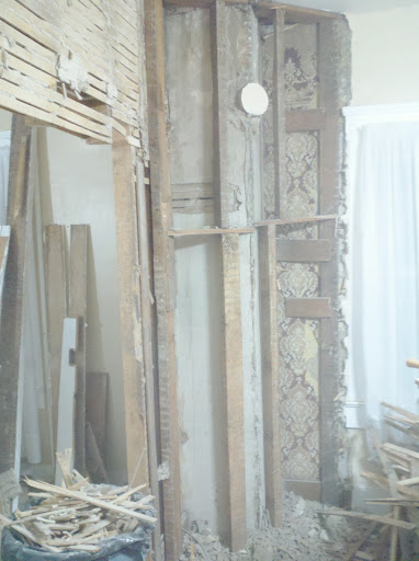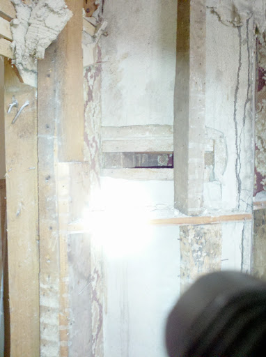 It also looks like the brick chimney was covered with a plaster wall. Why don't we do a little exploratory surgery on the plaster wall. See what we're dealing with?