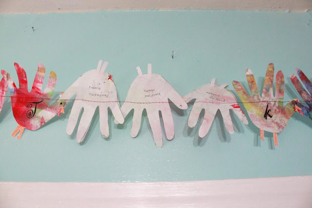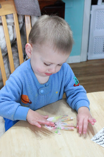 Step 1: Convince toddler that it's fun to trace hands onto paper.