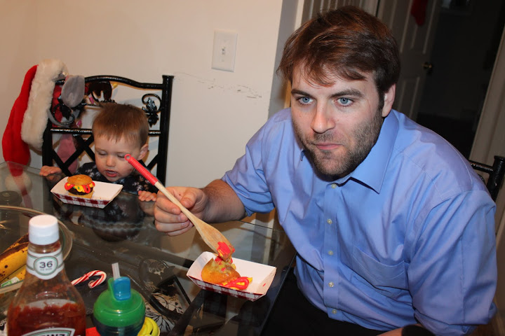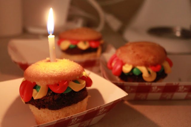We started off the evening with an extra healthy meal from McDonald's. If given the chance, Stephen would probably eat McDs out of every plain McDouble they have, so it seemed an appropriate choice... Especially since his birthday "cake" was completely inspired by these little beauties from Bakerella: