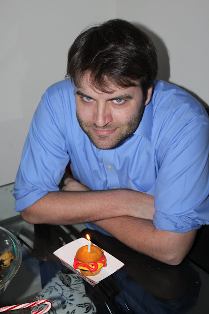 Stephen, of course, got a "burger" without any "lettuce" on it. I wouldn't dream of trying to get the man to eat anything green on his birthday. That would just be cruel. ;)