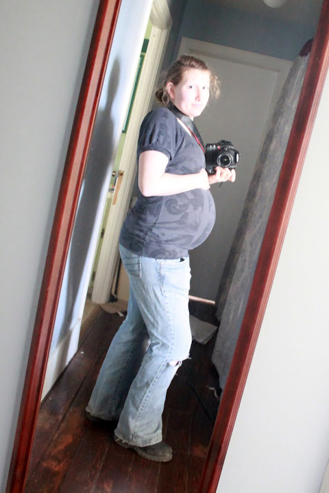 belly two weeks ago. after a day of fence post installation. hence the awesome hair/outfit.