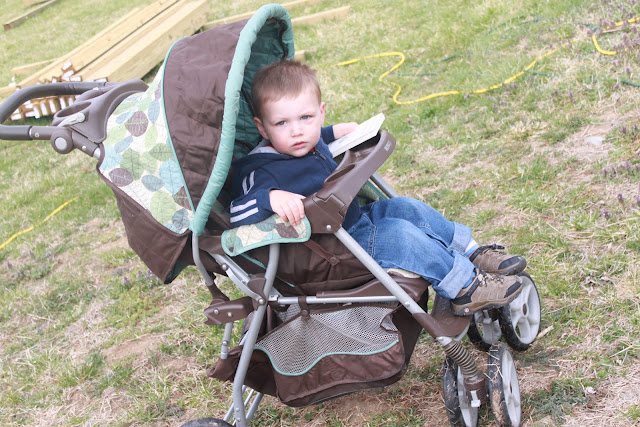Joseph, on the other hand, was not pleased with me. He wanted to go for a walk in the stroller. He even got up in the stroller, latched the tray, and proceeded to let me know in no uncertain terms that playing in the back yard wasn't good enough for him.