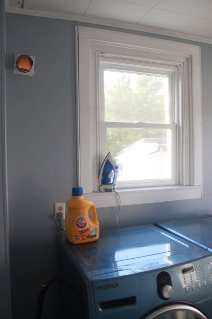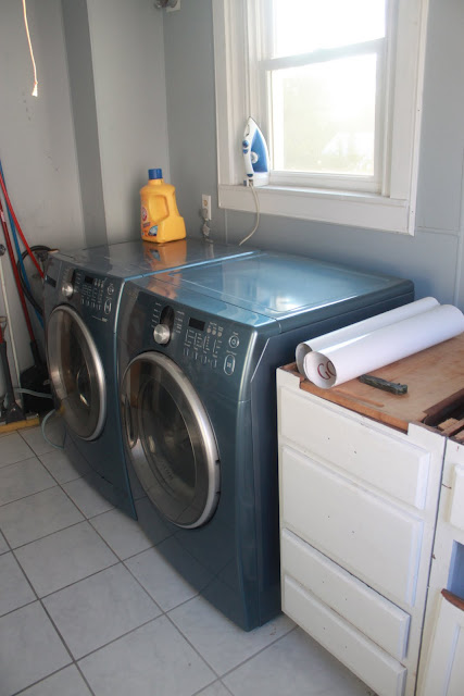 We relocated the dryer vent and stacked our brand new washer and dryer. Unfortunately, there wasn't anything else in the room. No cabinets. No shelving. No countertops. So, more often than not, the room would end up looking like this: