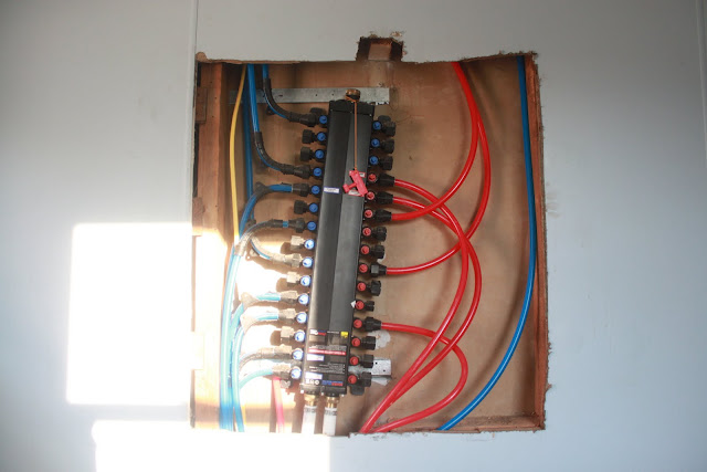 Stephen redid all the plumbing with Pex lines (which are AH-mazing) and he wanted to have easy access to turn water on and off from inside the house. We have a cellar, not a basement and you have to go outside to get to it. So... he may have cut a hole in my laundry room wall. I've been thinking of how best to fix this and I think I've settled on one of these: