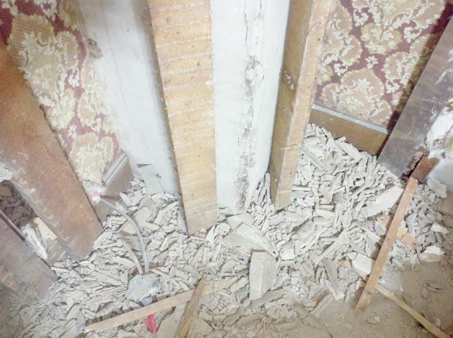 It also looks like the brick chimney was covered with a plaster wall. Why don't we do a little exploratory surgery on the plaster wall. See what we're dealing with?