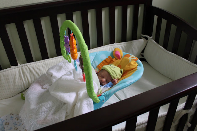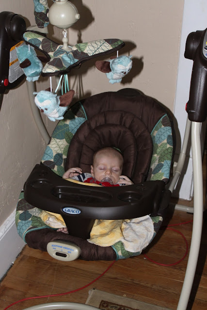 A swing is not essential, but it sure was nice to have around. Joseph fell asleep in that thing quite often. I loved it so much that I lugged it all the way to Myrtle Beach with us. I didn't like that it ran on batteries and couldn't be plugged in and, if given the chance to choose again, I would find the smallest, most compact, travel friendly swing on the market (similar to what Young House Love used for their daughter Clara) since swings take up a lot of space. UPDATE: I have recently been informed that you can purchase a swing with a detachable chair that doubles as a portable bouncy seat. If I were trying to save space in my house and I were you, I'd jump on that!