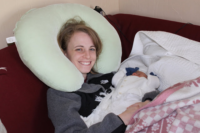 Lastly, I had a Boppy which was given to me as a hand me down. I used it some for nursing in the early days when Joseph was itty bitty and could just lie across my lap while nursing. He needed to be propped up and the Boppy did help save my arms from getting crazy tired. However, I'd say that the Boppy was mostly used for propping Joseph up when he was lying on a blanket or first learning to precariously sit up. I don't think it was an essential item, but it was useful. It also makes for a lovely crown: