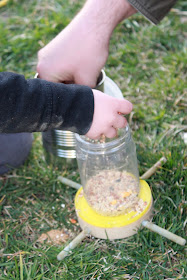 Since we don't have any trees in our back yard, we weren't really able to do this before. Joseph was very excited. He really likes his bird feeder, Pop! Thank you!