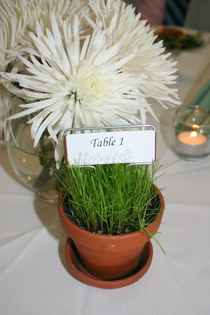 The vases were mason jars that Theresa had on hand and they were perfect because they are practically giant baby food jars. I'm easily amused by details like that... ;)