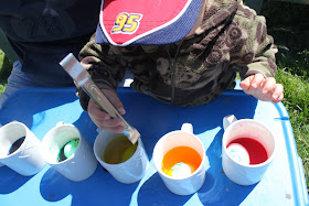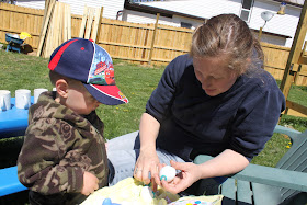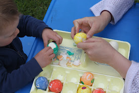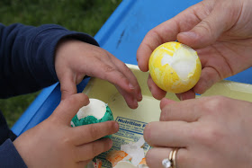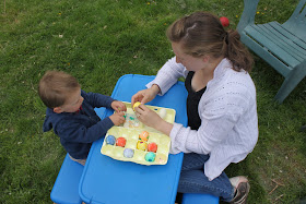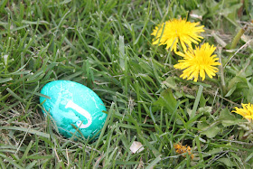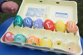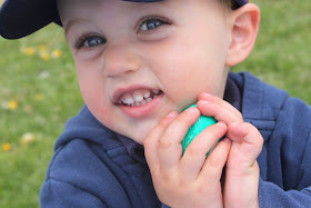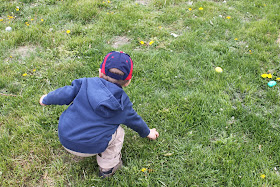 Joseph's favorite part was helping me "hide" the eggs by gently placing (...er...dropping from a foot above the ground) the eggs in the grass.