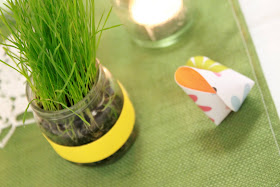 What I forgot to mention about the baby food jars of grass that we planted for Sarah's baby shower (and then later used for Joseph's birthday party)...