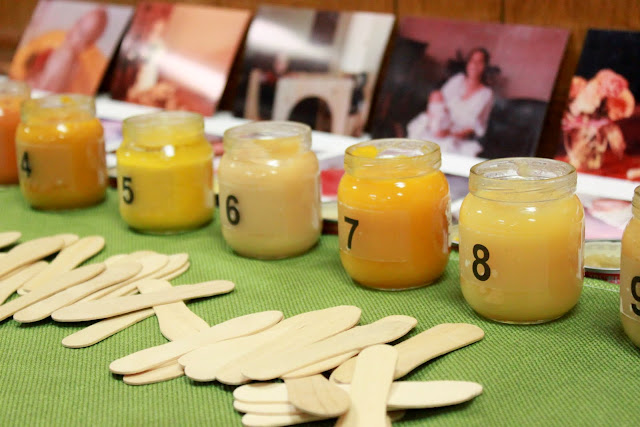 Oh, silly shower games. We had some common shower games such as guessing Sarah's baby names A-Z and tasting unlabeled baby food and trying to identify it.